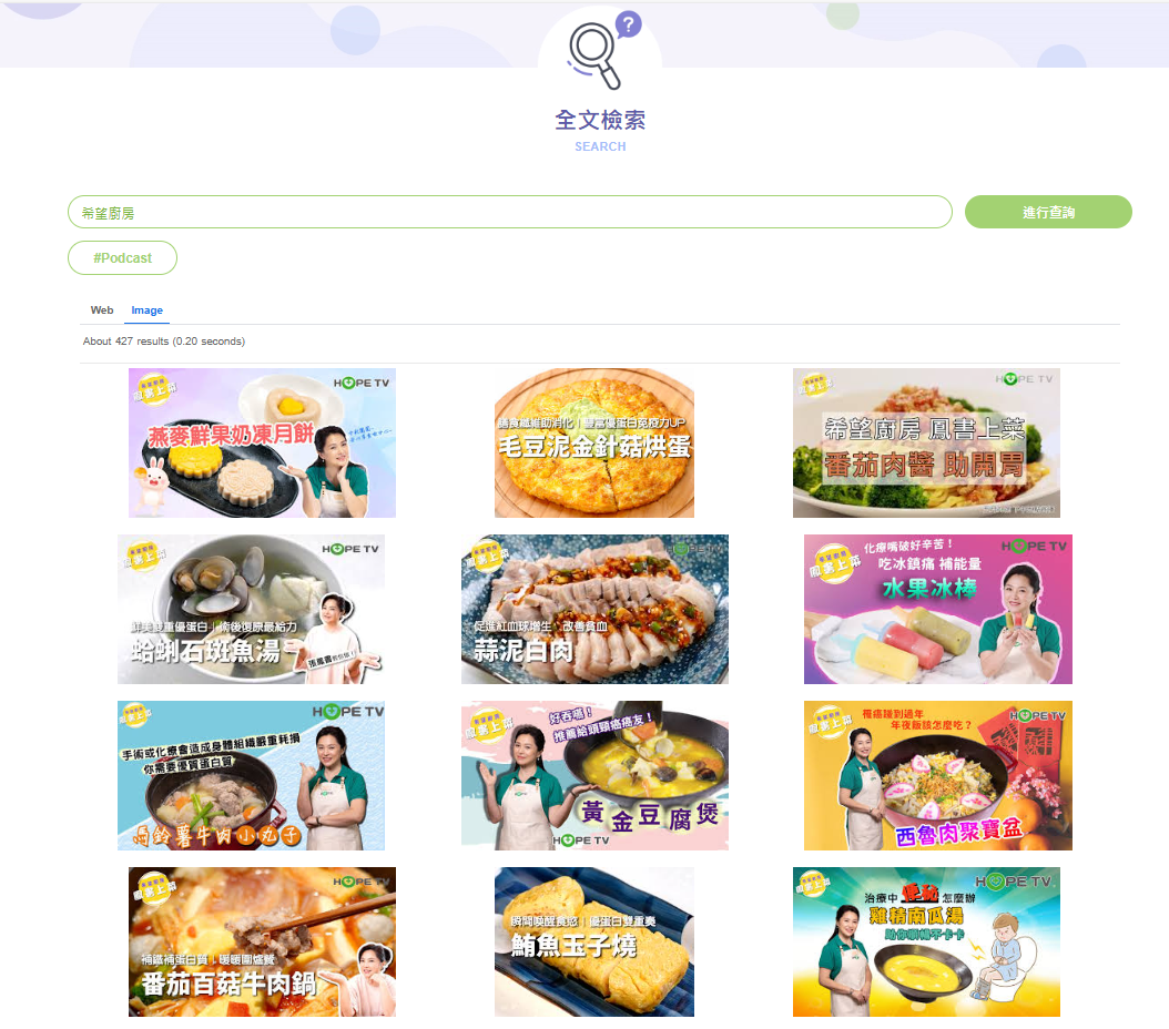 這是一個十分溫馨貼心由廚師與營養師精心設計的網頁,不但分類提供許多主菜、配菜、湯品、飲品、點心的健康食譜,而且列出每樣的熱量、蛋白質、脂肪、鹽分、甚至有些還有鐵質的含量。希望大家好好地享受吧!