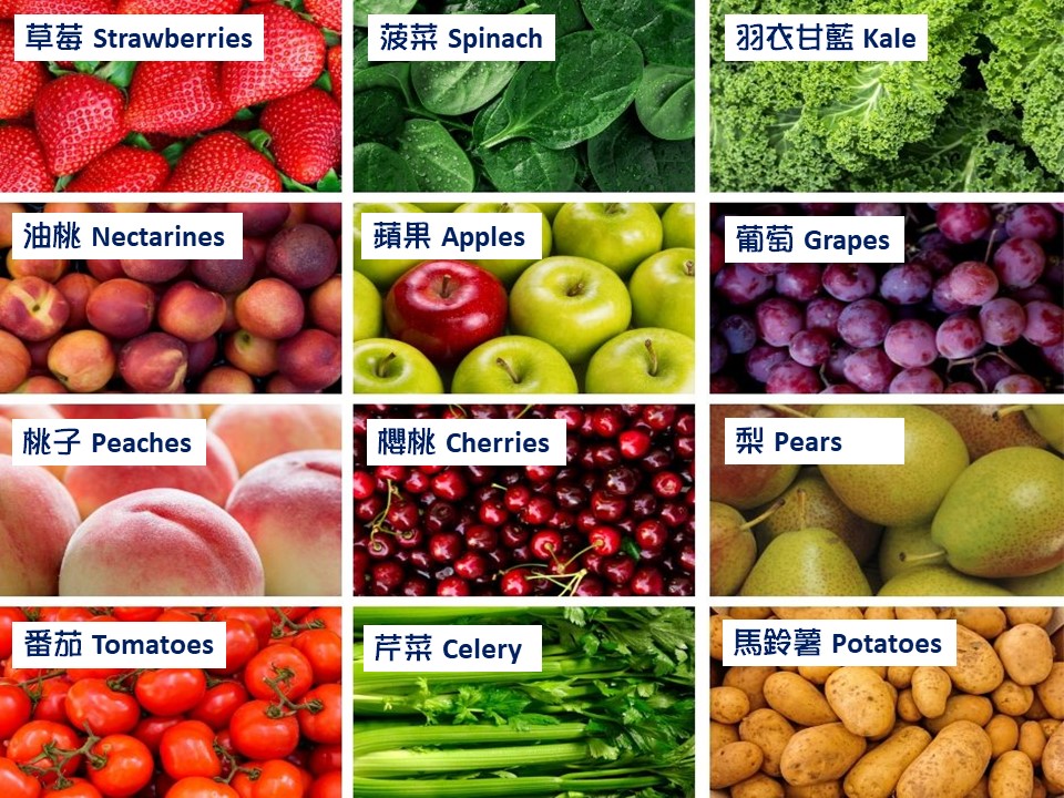 農藥殘留量最高的12 項農作物與農藥汙染最低的15 項農作物 “Dirty Dozen” & “Clean Fifteen”