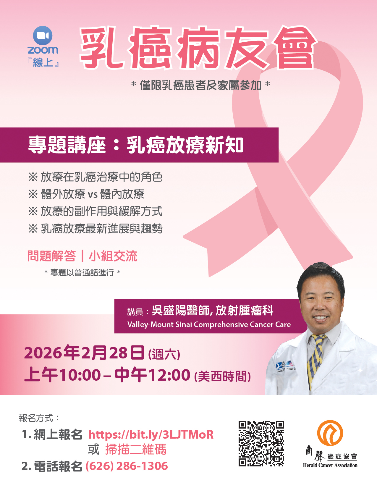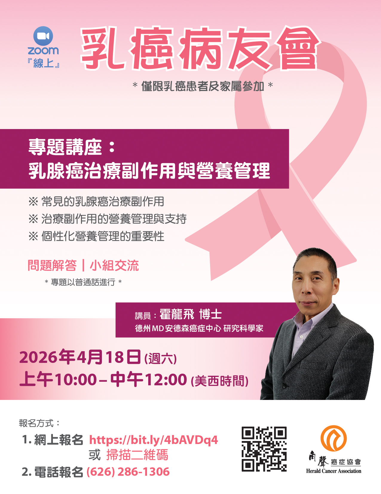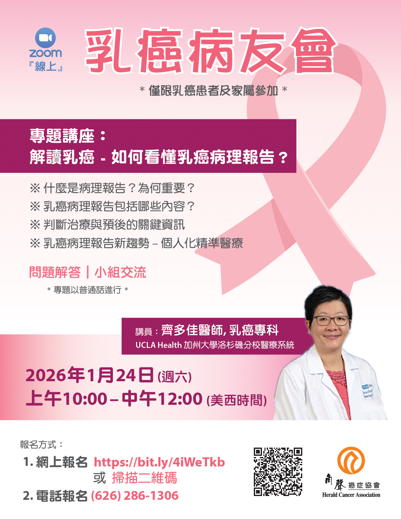2026年乳癌病友會22 1 月, 2026 在 乳癌病友會 / 癌友互助會 / 綠洲團契 / 開懷學苑 by Herald Cancer Association 04/18 【線上】乳癌病友會 03/28 【實體】乳癌病友會 02/28 【線上】乳癌病友會 01/24 【線上】乳癌病友會