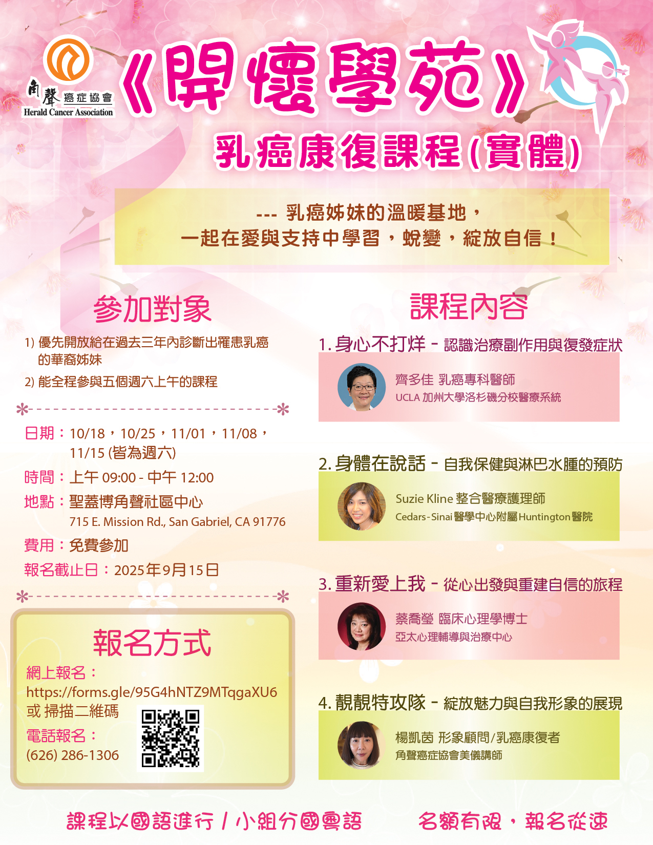 2025年由【南加州角聲癌症協會】舉辦的「開懷學苑」睽違已久再次開課!