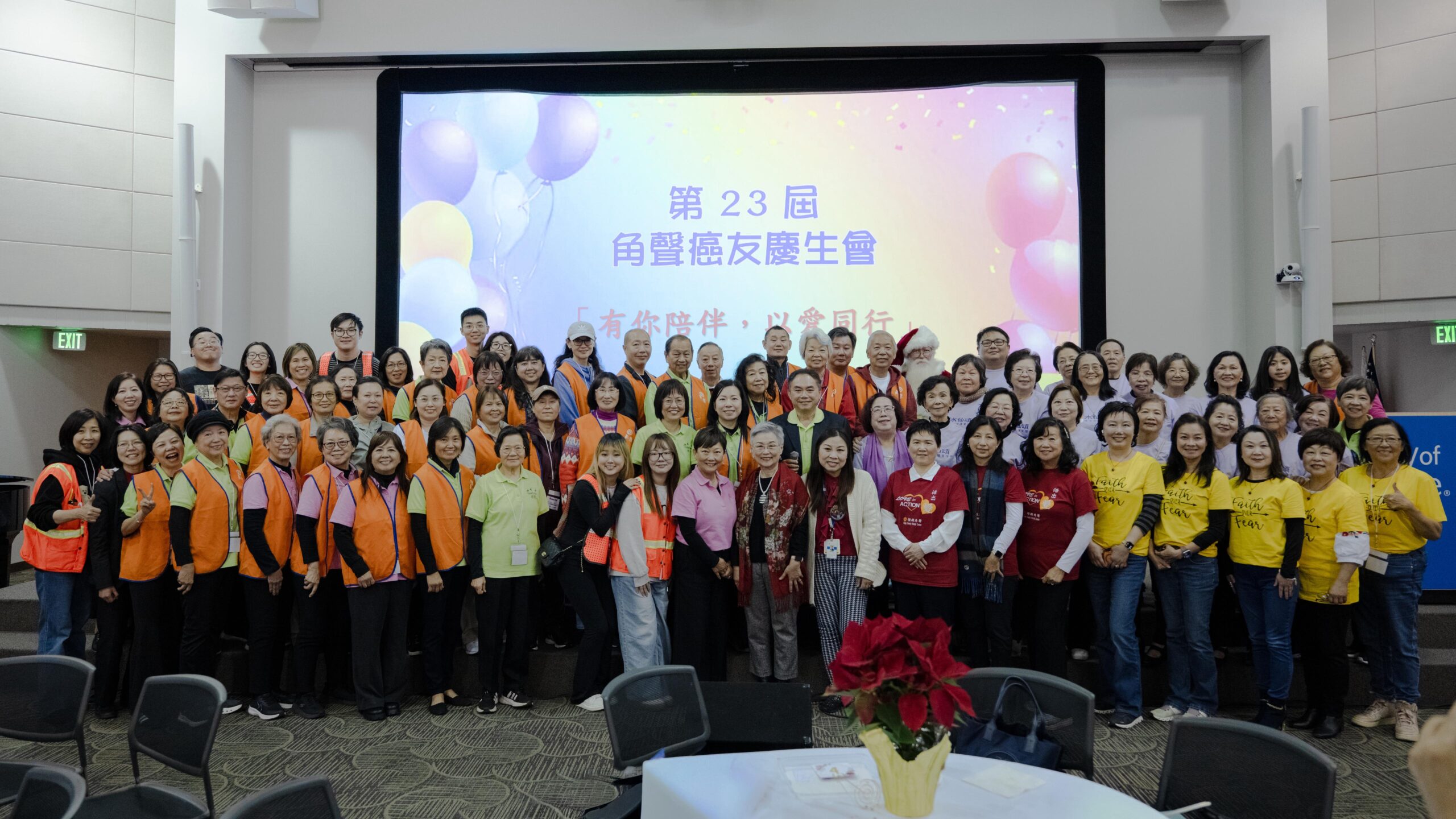 台上台下,眾多 協工夥伴齊聚大合唱,由角聲癌症協會主任擔任伴奏,大合唱中伴隨的揚琴聲是由聖地牙哥的志工合奏。水仙合唱團亦參與其中,歌聲象徵彼此同行、互相扶持,將現場氣氛推向高潮。